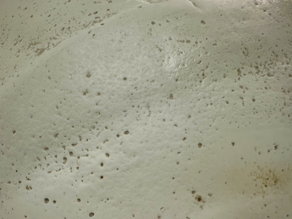 Vervuiling in de dieper gelegen holtes van een glasoppervlak FOTO M. SlagerDaarnaast is de restaurator op de hoogte van conserveringstechnieken op het gebied van reiniging. In veel gevallen zal de restaurator gebruik maken van droge of beperkt natte technieken. Veelal werken restauratoren bij natte technieken met (gedemineraliseerd) water. Soms kunnen ze ook andere oplosmiddelen zoals aceton of ethanol toevoegen. Wanneer en in welke concentratie hangt af van de specifieke kenmerken van het object in kwestie. De veelal toegepaste technieken variëren van voorzichtig droog verwijderen van opliggend vuil met een penseel of zachte kwast tot het onderdompelen van het voorwerp in water. Commerciële glasreinigingsmiddelen worden nooit toegepast.