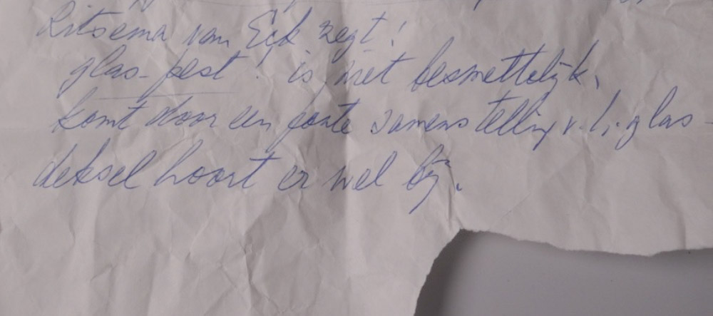Notitie in glasobject uit de collectie van Paleis ’t Loo FOTO M. Slager