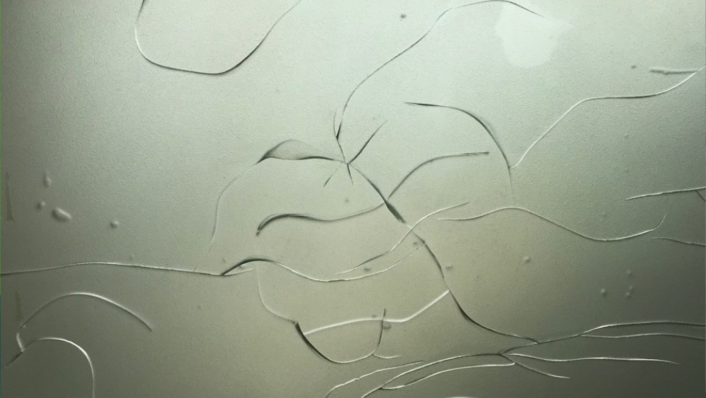 BOVEN Het patroon manifesteert zich anders op de locatie van gravering dan elders