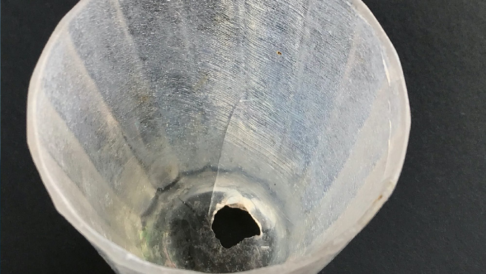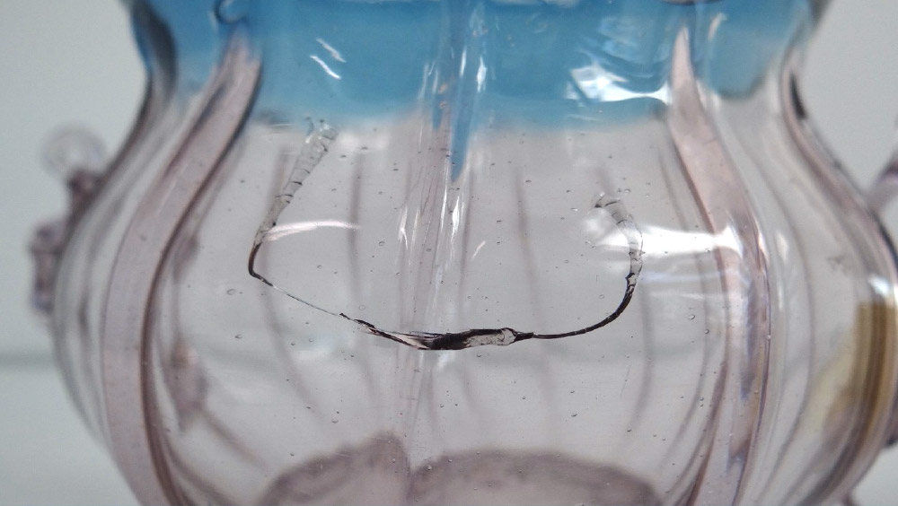 Het breukpatroon in een mondstuk van een glazen ‘jachthoorn’ is bijvoorbeeld niet het gevolg van atmosferische degradatie, maar onderdeel van het maakproces. Deze barstpatronen houden verband met het feit dat het mondstuk tijdens vervaardiging op zeer snelle wijze is afgekoeld in koud water. Zie filmpje waarin glasblazer Marc Berreda een glazen hoorn vervaardigd.