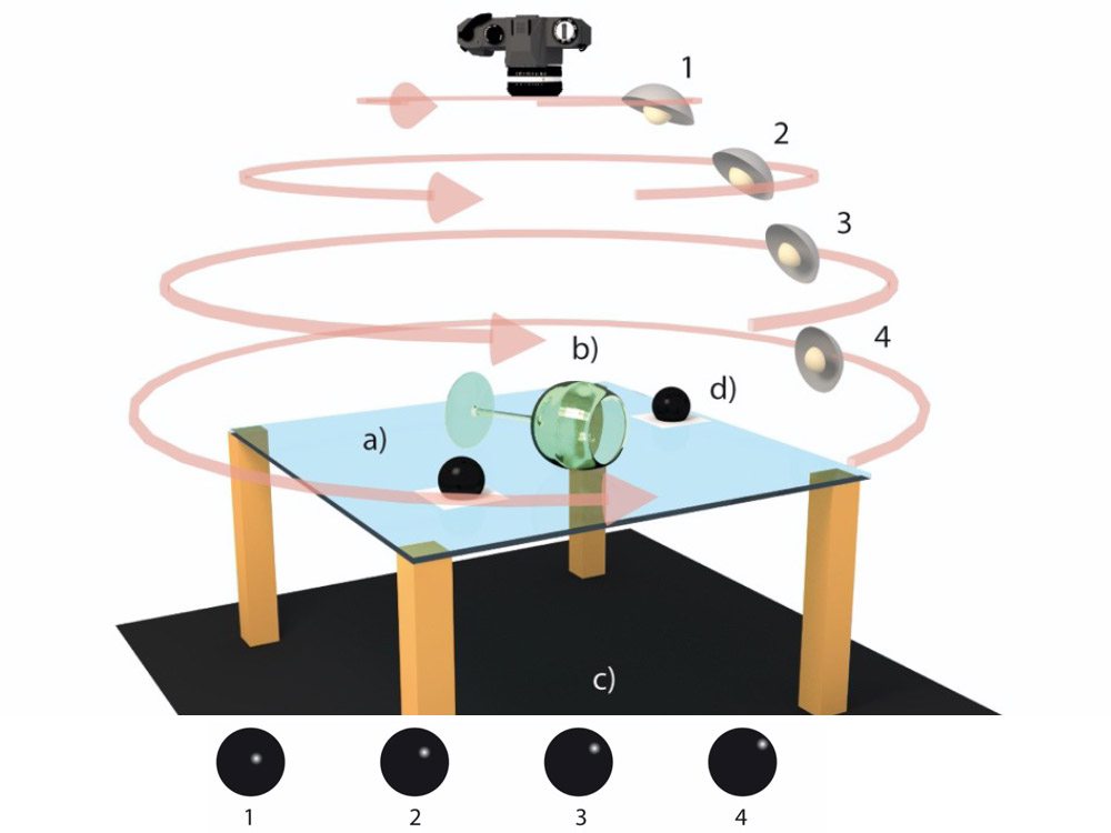 AFBEELDING A. Dittus, 2016, Swiss National MuseumEen object wordt gefotografeerd met licht van gelijke afstand en van diverse richtingen.