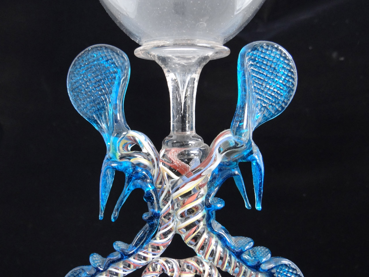 slangenglas of ‘verres à serpents’. Dit type glas kwam op in de 16e eeuw in Murano, maar werd in de 17e eeuw ook op andere plekken in Europa gemaakt.