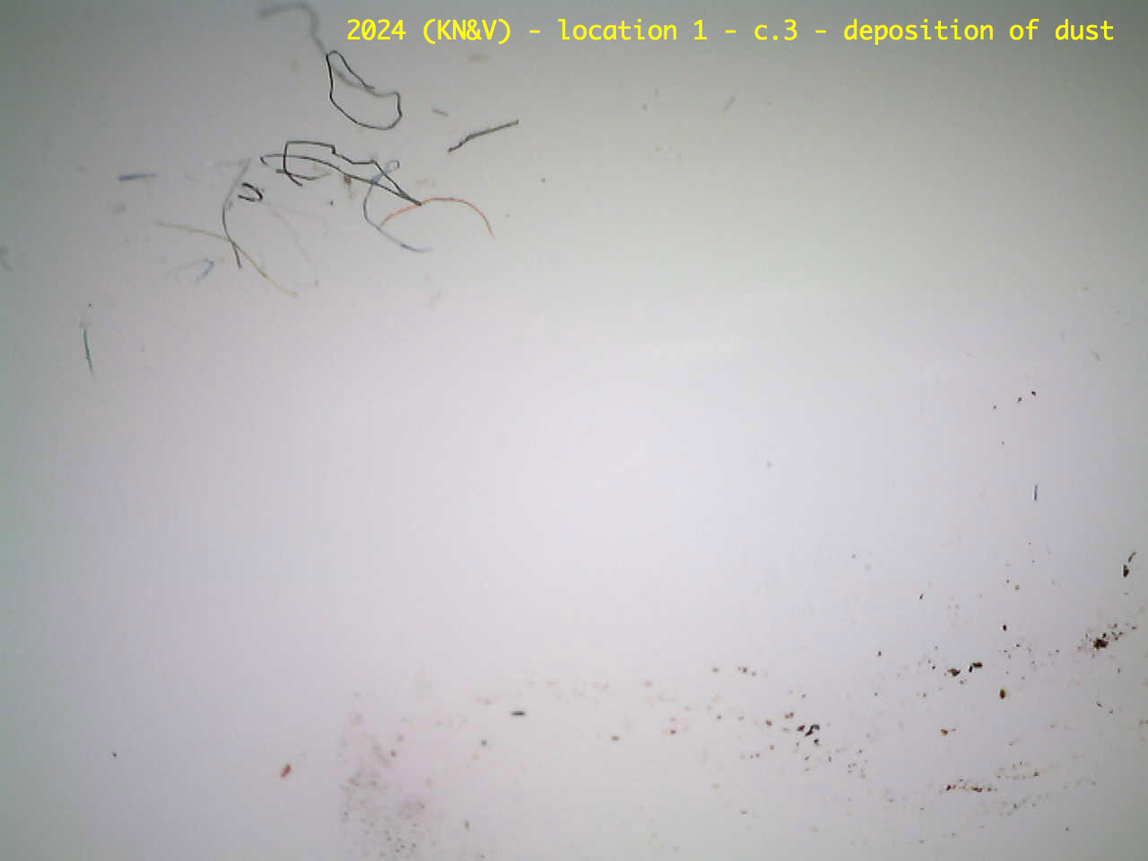 Druppels op het oppervlak, stof blijft hangen (vezels op glasoppervlak). Maar alleen op de mat witte (meer opake delen) die uitsteken. Het glas ertussen heeft dit niet. Hier is een ander type glas toegepast of het witte glas met een transparante kleurloze overvang bedekt.