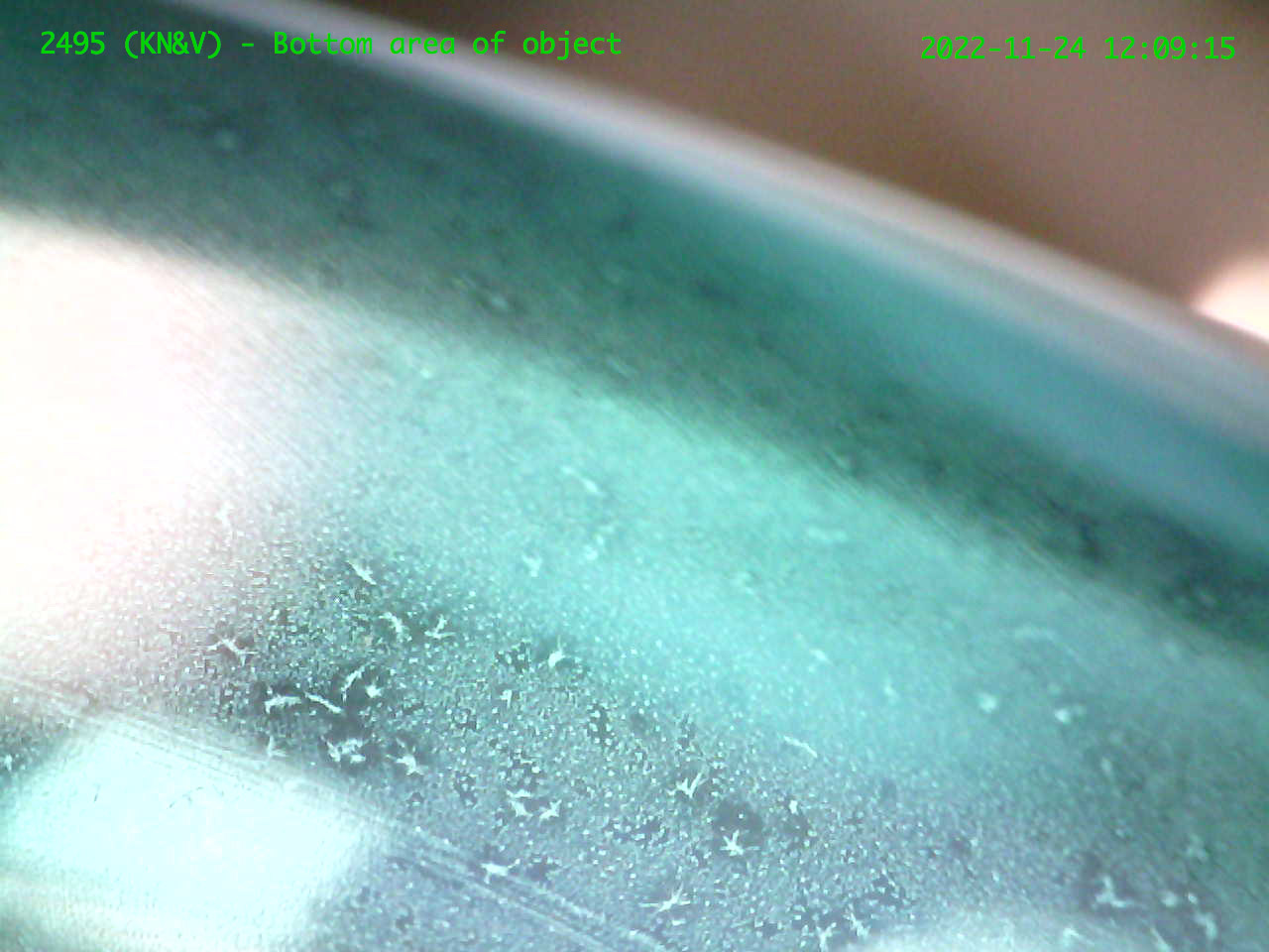 Het voorwerp is aan de bovenzijde dichtgeplakt. Daarom was het niet mogelijk om de binnenzijde verder te bestuderen. Ook heeft er geen IC onderzoek plaatsgevonden.
